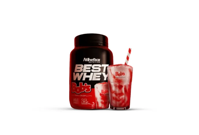 A Atlhetica Nutrition, empresa especializada em suplementação, adiciona uma novidade na linha Best Whey. O sabor Milk Shake de Morango é fruto de uma parceria com a rede de fast food Bob’s.