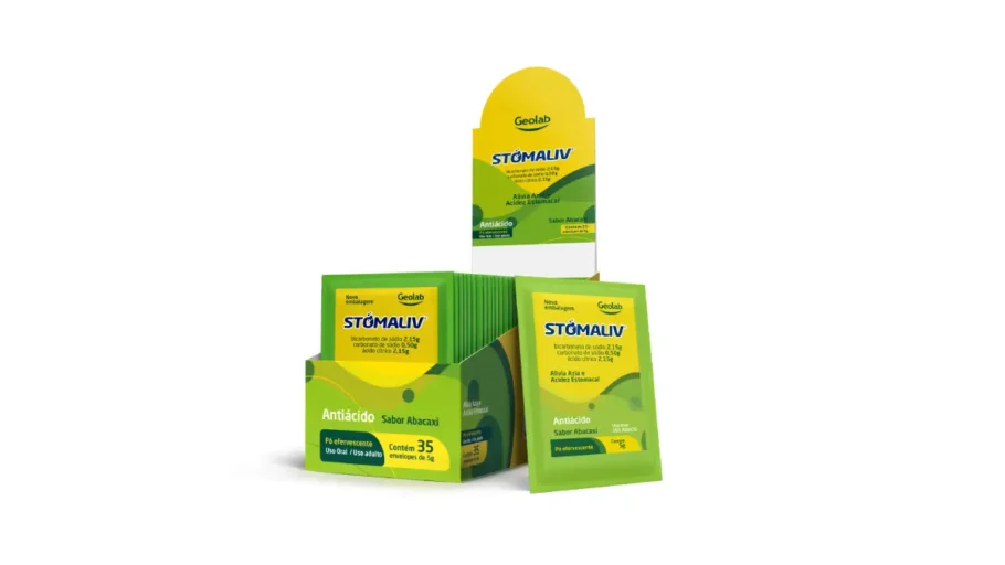 A Geolab apresenta uma nova embalagem do Stomaliv. Agora, o antiácido também conta com uma versão mais compacta e prática para o ponto de venda – o display reunindo 35 sachês.
