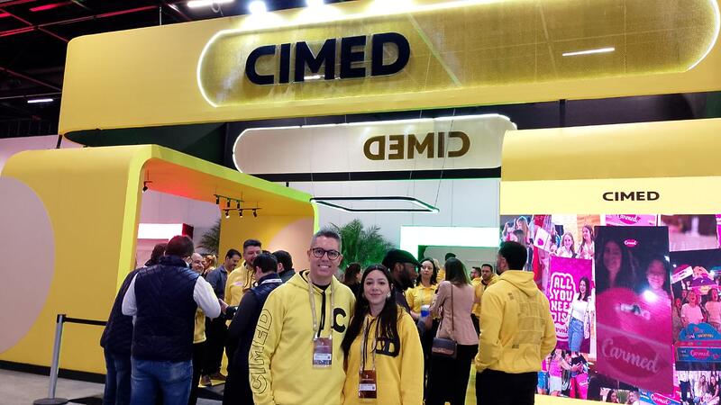 Fabiano Faria e Estefani Pereira, da Cimed, enfatizaram sucessos de Carmed e Lavitan - Fabiano Faria e Estefani Pereira, da Cimed, enfatizaram sucessos de Carmed e Lavitan