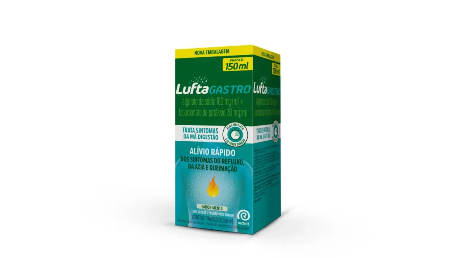 LUFTAGASTRO (alginato de sódio e bicarbonato de potássio). M.S. 1.7390.0005. Indicado para o tratamento de sintomas do refluxo, azia e queimação. SE PERSISTIREM OS SINTOMAS, O MÉDICO DEVERÁ SER CONSULTADO. AGO/2025