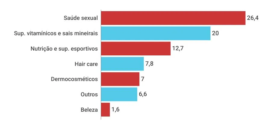 Apesar de todos os segmentos terem apresentado um saldo positivo durante o período, seus desempenhos foram distintos. Liderando o crescimento, o mercado de saúde sexual cresceu 26,4%, enquanto os produtos de beauty deram o menor passo a frente, com avanço de 1,6%.