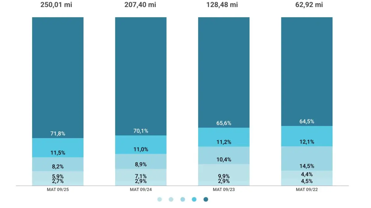 São Paulo segue como o principal mercado da categoria no Brasil, seguido por Rio de Janeiro e Minas Gerais. Já os estados com maior evolução foram Santa Catarina, Pernambuco e Goiás.