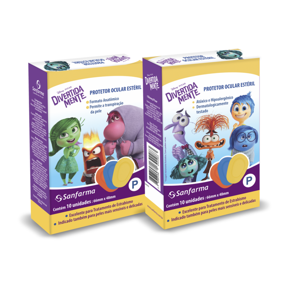 - Protetor Ocular Estéril Infantil: Exclusivo no Brasil, com design anatômico que facilita a fixação. Indicado para peles delicadas e sensíveis, especialmente no tratamento do estrabismo. Embalagem com 10 unidades.