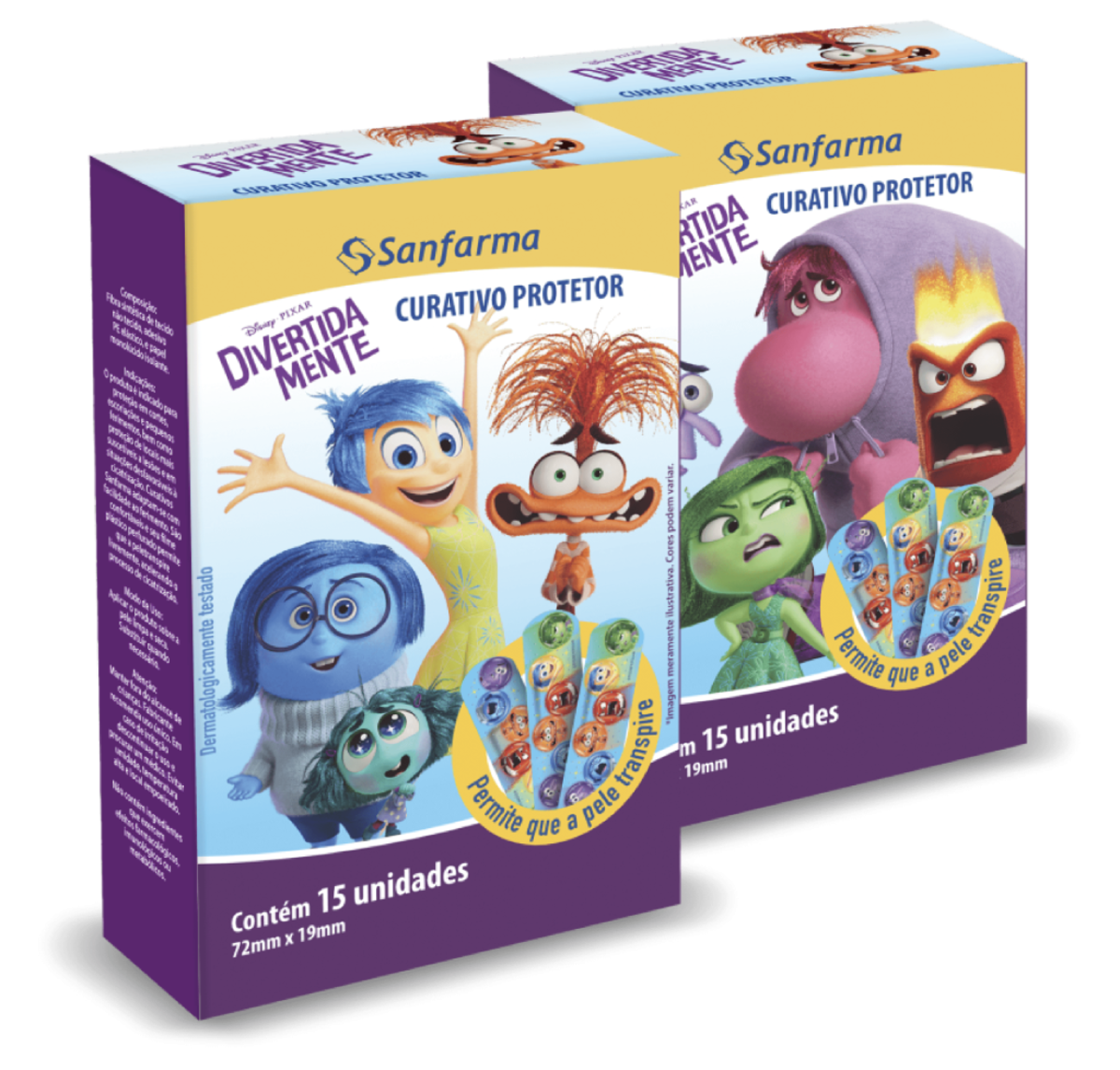 - Curativo Protetor: Indicado para cortes, escoriações e pequenos ferimentos, além de áreas suscetíveis a lesões ou com dificuldade de cicatrização. Desenvolvido com material respirável, design anatômico e dermatologicamente testado, o produto alia proteção prática e descontração com cores e expressões dos personagens do filme. Embalagem com 15 unidades