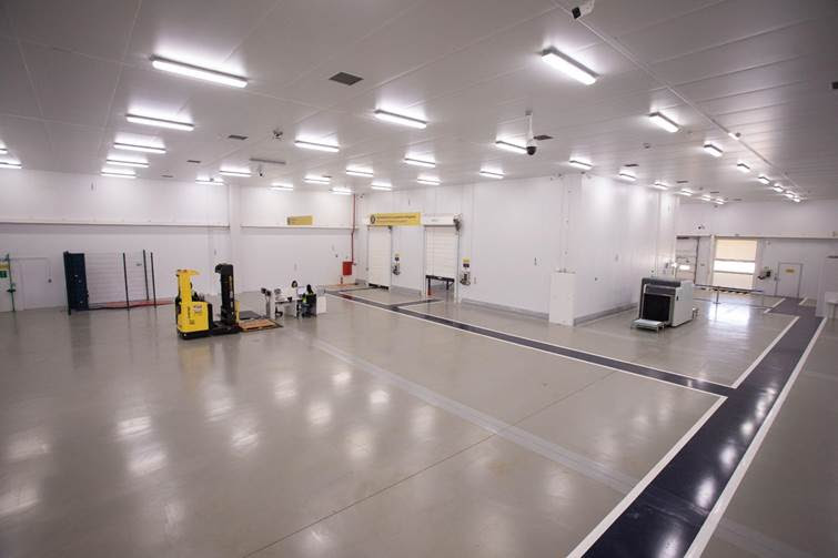 O novo terminal dispõe de duas câmaras frias que operam entre -18 ºC e 25 ºC, além de climatização completa em todas as etapas do processo, do recebimento às docas.