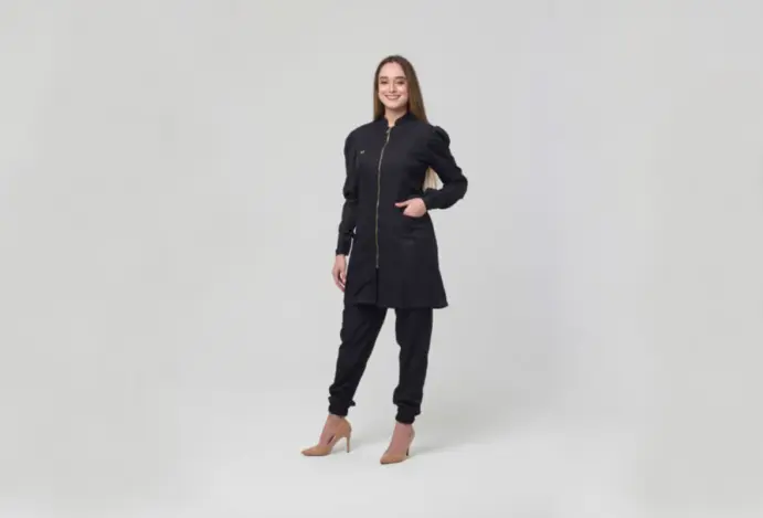 As peças estão disponíveis em tamanhos de PP a GG e podem ser personalizadas. A fabricante oferece jalecos 3/4 com manga curta ou longa, polos, scrubs e coletes sociais, em diferentes modelagens.