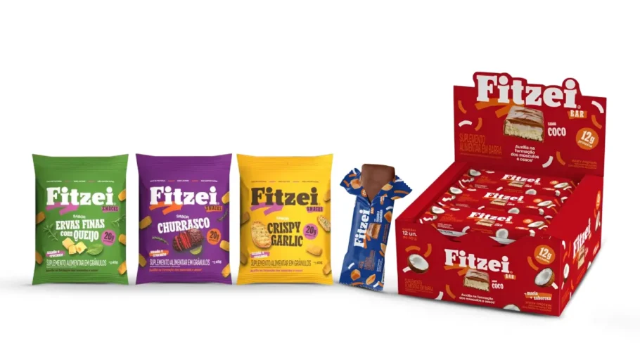 A Vitafor ampliou a linha Fitzei com o lançamento de dois novos sabores da barra de whey, nas versões Coco e Caramelo & Amendoim. Além disso, a marca entrou no segmento de snacks proteicos com o Fitzei Snacks, disponível nas versões Churrasco, Crispy Garlic e Ervas Finas com Queijo.